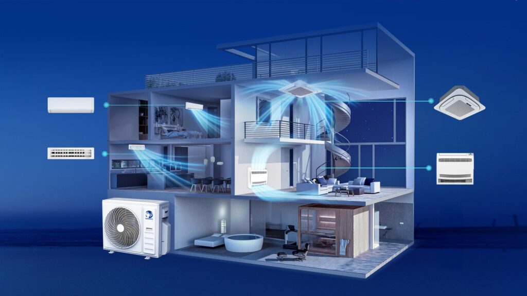 Das System ermöglicht den Anschluss von bis zu fünf Innengeräten an ein einziges Außengerät und sorgt so gleichzeitig in mehreren Räumen für ein angenehmes Raumklima. Diese Lösung eignet sich besonders für Wohnungen, Büros und Hotels, in denen Platzersparnis und eine saubere Gebäudefassade wichtig sind. Durch den zentralen Betrieb kann die Heiz- und Kühlenergie effizienter zwischen den Räumen verteilt werden. Das senkt den Stromverbrauch und sorgt im gesamten Gebäude für ein gleichmäßiges Temperaturniveau.