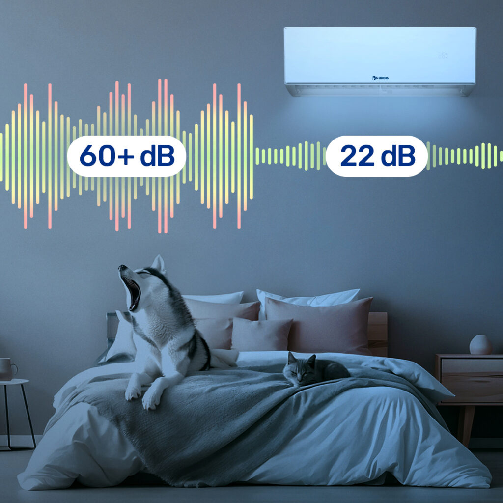Guter Schlaf bestimmt, wie erholt und energiegeladen Sie sich am nächsten Tag fühlen, und selbst leise Hintergrundgeräusche können die Schlafqualität beeinträchtigen. Das NØRDIS NOVA Klimagerät arbeitet besonders leise – nur 22 dB – damit Sie an warmen Sommernächten kühle, frische Luft genießen können, ohne durch störende Geräusche beeinträchtigt zu werden.